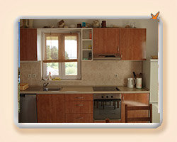 Na prvom katu veličine 40m2, ulaz sa istočne strane. Soba s bračnim krevetom na sjeveru. Kupatilo/WC s tuš kabinom i perilicom robe. Dnevni boravak-kuhinja-blagavaona na južnoj strani ( hladnjak/zamrzivač, keramička ploča za kuhanje, ugradbena pečnica, perilica suđa). U dnevnom boravaku se nalazi kutna garnitura s mogućnošću razvlačenja u dvokrevetni ležaj. Terasa preko 22m2 natkrivena. |