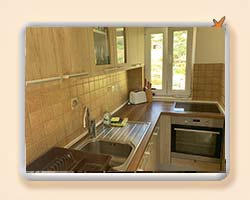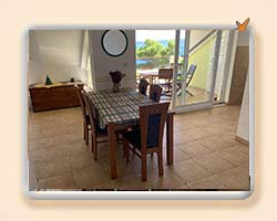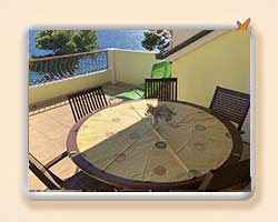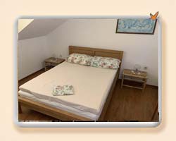 Stan u potkrovlju veličine 74m2, dvije dvokrevetne sobe od kojih je jedna sa svojim WC + tuš kabina. Dnevni boravak, blagavaona i kuhinja, te jedan dodatni WC s tušem + perilica robe. U kuhinji se nalaze hladnjak/zamrzivač, keramička ploča za kuhanje, ugradbena pečnica te perilica suđa. U dnevnom boravaku se nalazi kutna garnitura s mogućnošću razvlačenja u dvokrevetni ležaj. Terasa preko 20m2 dijelom natkrivena. |