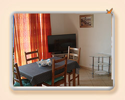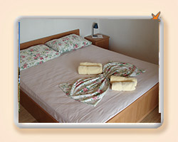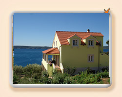 Na prvom katu veličine 40m2, ulaz sa istočne strane. Soba s bračnim krevetom na sjeveru. Kupatilo/WC s tuš kabinom i perilicom robe. Dnevni boravak-kuhinja-blagavaona na južnoj strani ( hladnjak/zamrzivač, keramička ploča za kuhanje, ugradbena pečnica, perilica suđa). U dnevnom boravaku se nalazi kutna garnitura s mogućnošću razvlačenja u dvokrevetni ležaj. Terasa preko 22m2 natkrivena. |
